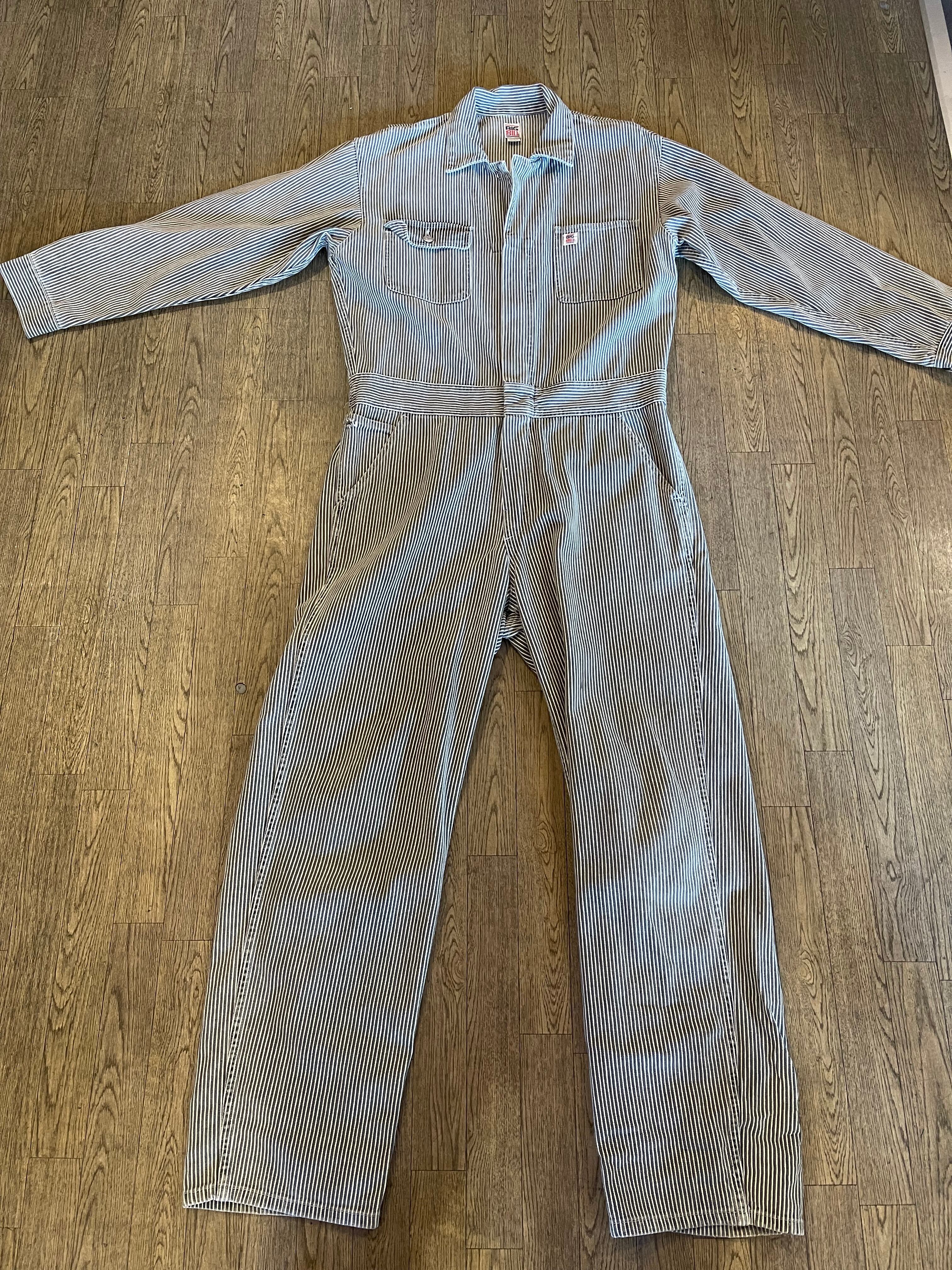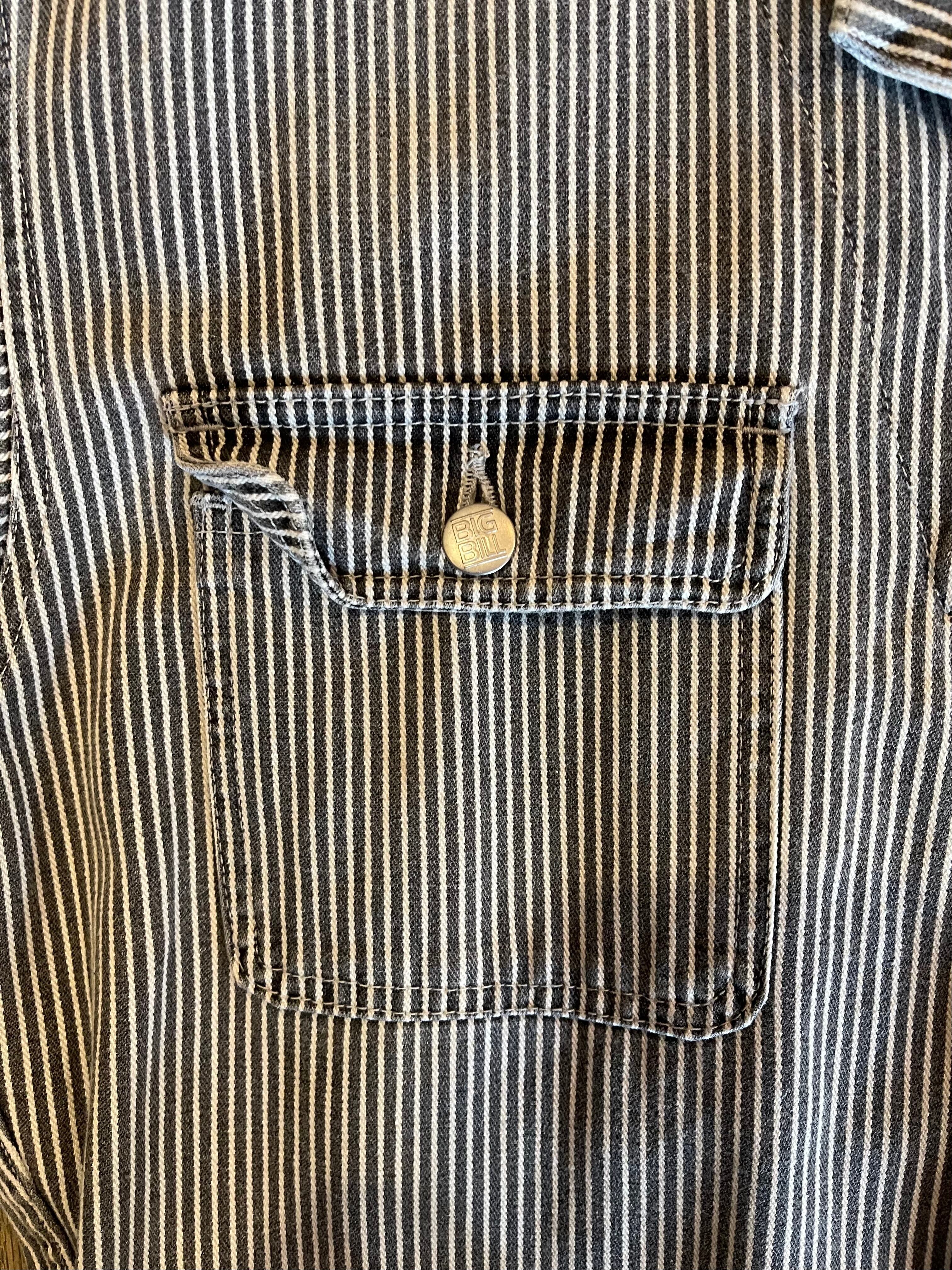 古着☆BIGBILLプリント デニムヒッコリー柄L/S長袖ツナギ SIZE M