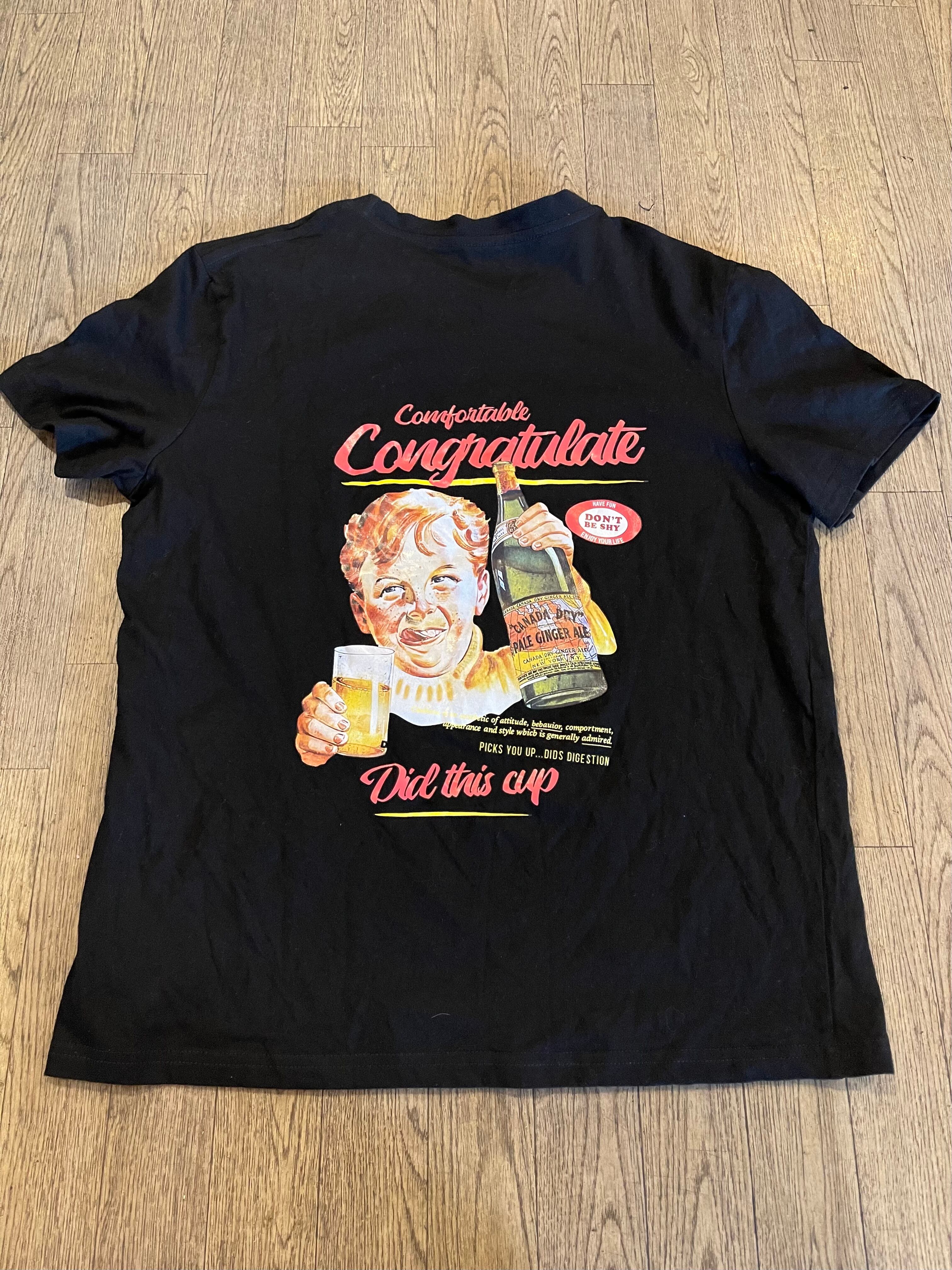 USED古着☆SHEIN/CANADADRYプリント 半袖 Tシャツ SIZE S ブラック